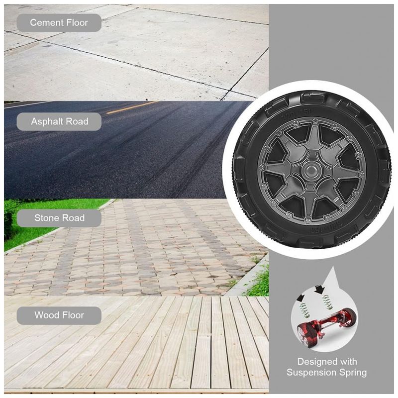 Projeto durável e humanizado Feito de ferro e material PP estritamente selecionados, este passeio de 2 lugares em caminhão é resistente e resistente ao desgaste o suficiente para suportar capacidade de peso de até 50 kg. Enquanto isso, quatro rodas têm um desempenho impressionante em resistência ao deslizamento e absorção de choques, tornando esses carros elétricos para 2 crianças adequados para serem s em cimento, estrada de asfalto, piso de madeira. A roda e o capuz adicionais podem ser abertos como caixas de zenamento para brinquedos.