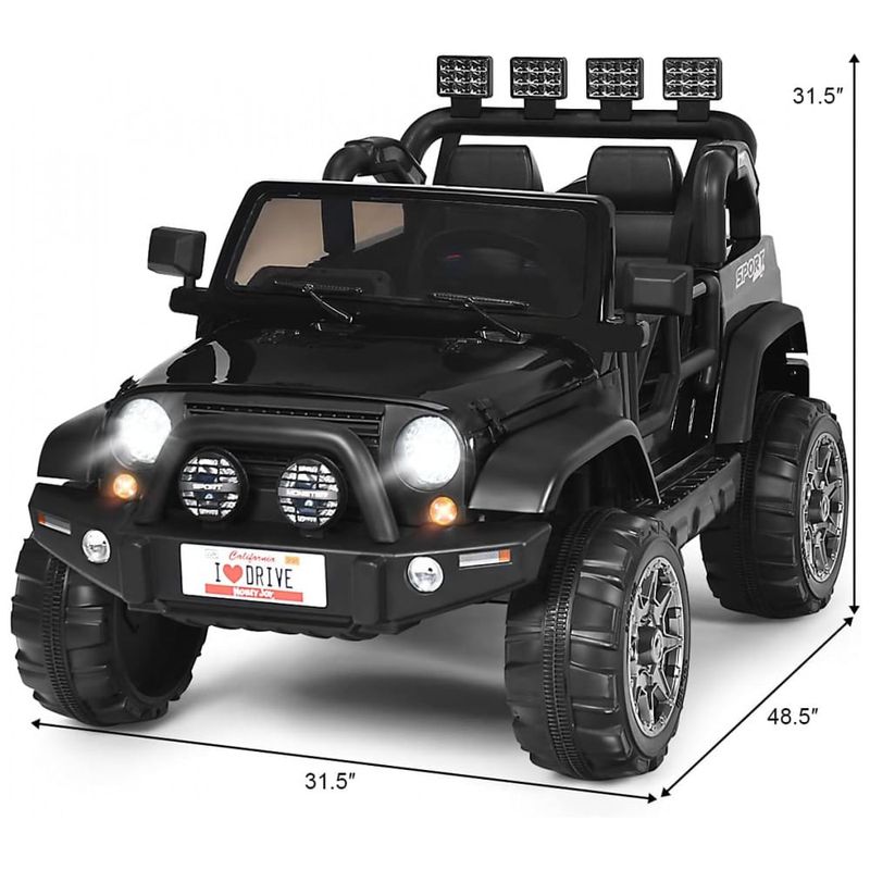 Presente perfeito para crianças Vem com a função de contar histórias e tocar música, este passeio de 2 lugares em caminhão é um maravilhoso presente de aniversário ou Natal para meninos ou meninas, e esse passeio de 12V em caminhão pode chegar a aproximadamente 3 6 km, h, para que eles fiquem emocionados em fazer uma aventura. Dimensão geral: Aproximadamente 123,19 x 80,01 x 80,01 centímetros