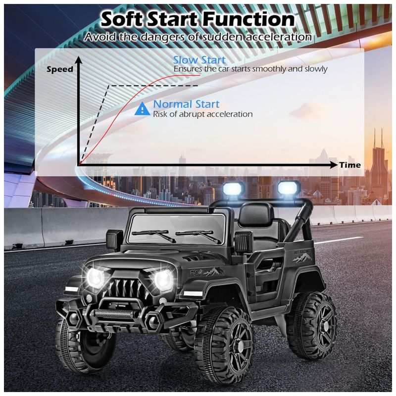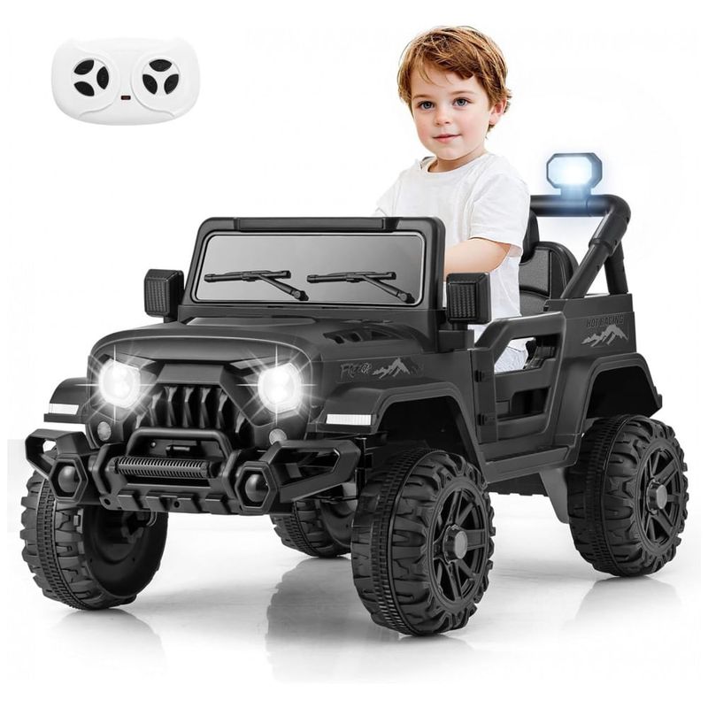 Recursos de segurança: Cinto de 2 pontos, portas com trava, partida suave, controle remoto parental