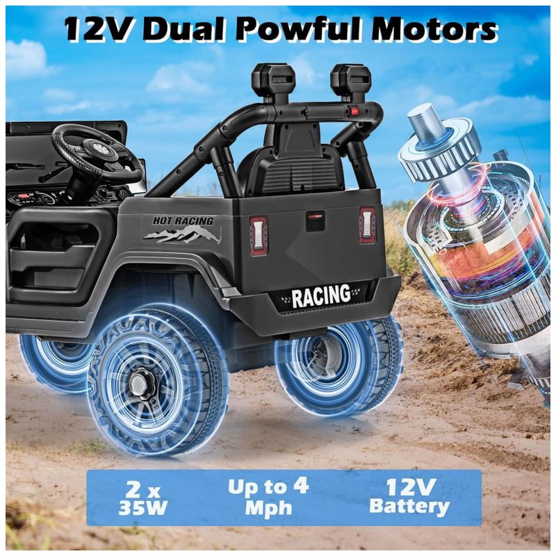 O CarroElétrico Infantil OLAKIDS 12V foi desenvolvido para proporcionar experiência de condução segura e interativa a crianças de 3 a 8 anos (36 a 96 meses). Equipado com dois motores de 35W, bateria recarregável 12V 4,5Ah e rodas resistentes, suporta até 30 kg, entregando autonomia de 1 a 2 horas por carga. O painel exibe indicador de energia, velocidades ajustáveis e sistema de partida suave, garantindo conforto e proteção no uso.
