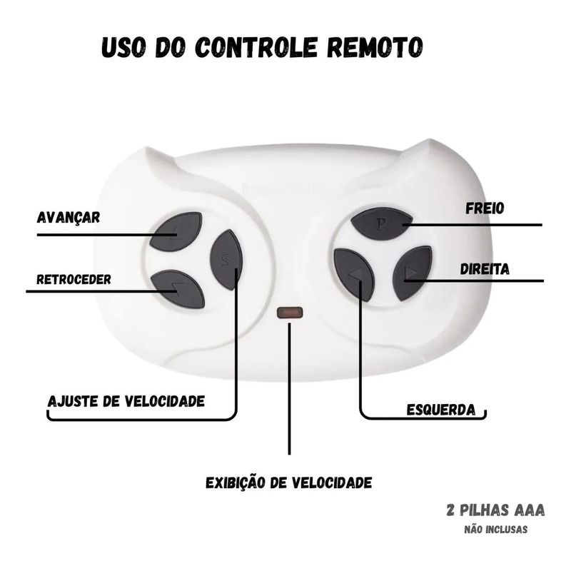 - Função de Direção: Interruptor de direção com opções para frente e trás, permitindo que a criança dirija o carro com facilidade.