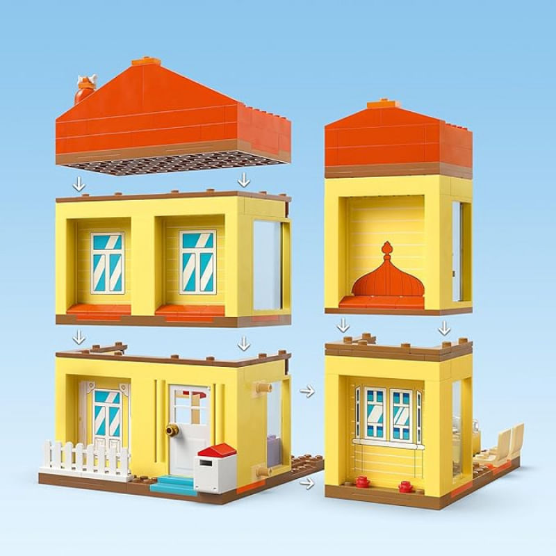 A Casa de Família da Bluey (11203) é um conjunto LEGO® de alta qualidade repleto de detalhes, acessórios e personagens da famosa série de TV Bluey, projetado para inspirar brincadeiras imaginativas em crianças maiores de 4 anos. Com vários cômodos modulares e removíveis, as possibilidades de histórias e aventuras são infinitas, permitindo que os pequenos recriem momentos da série ou inventem novas cenas com a família Heeler.