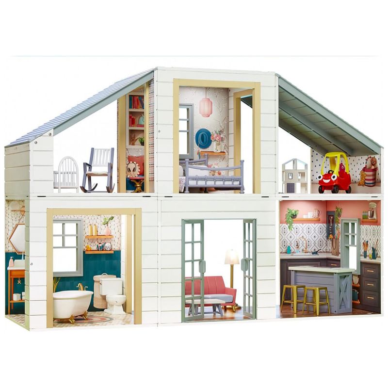 6 QUARTOS A casa de bonecas vem com 6 quartos incluindo uma sala de jogos no sótão e oferece muitas combinações para a imaginação de uma criança