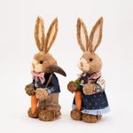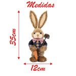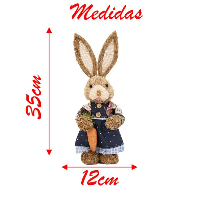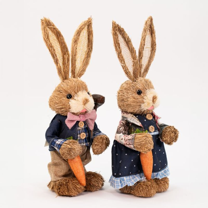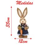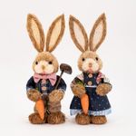 Casal de Coelhos de Páscoa Palha Coelhinhos Azul Escuro 35cm -