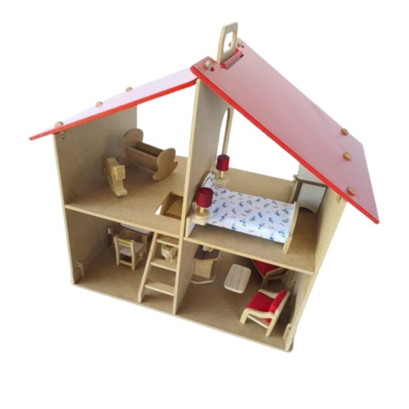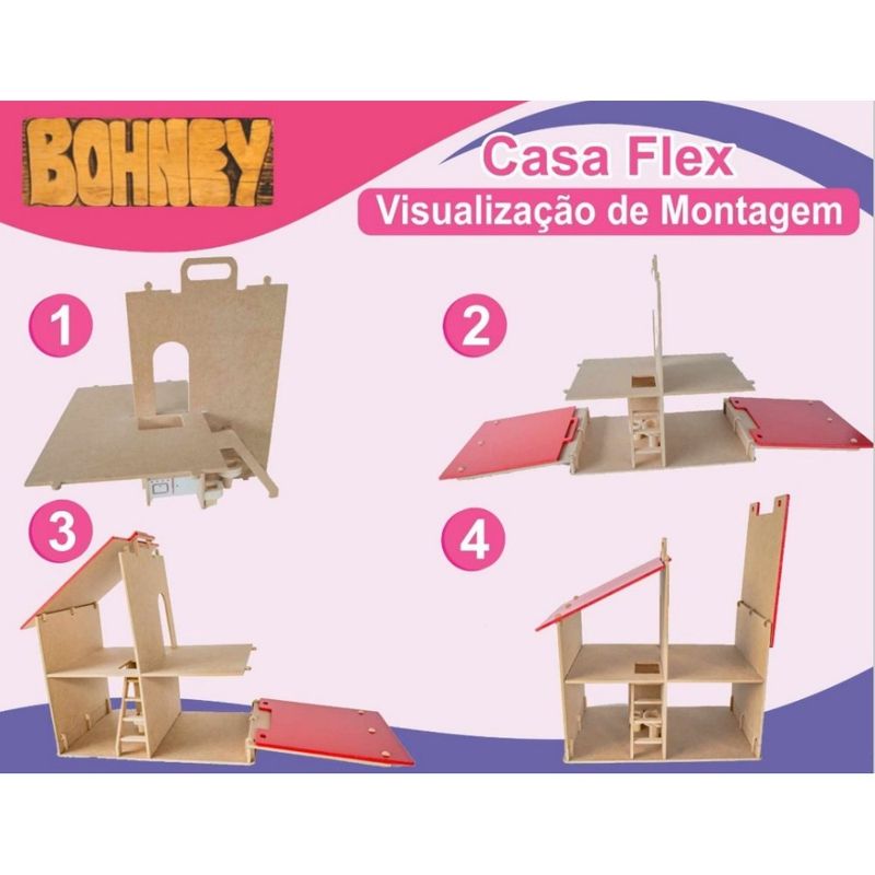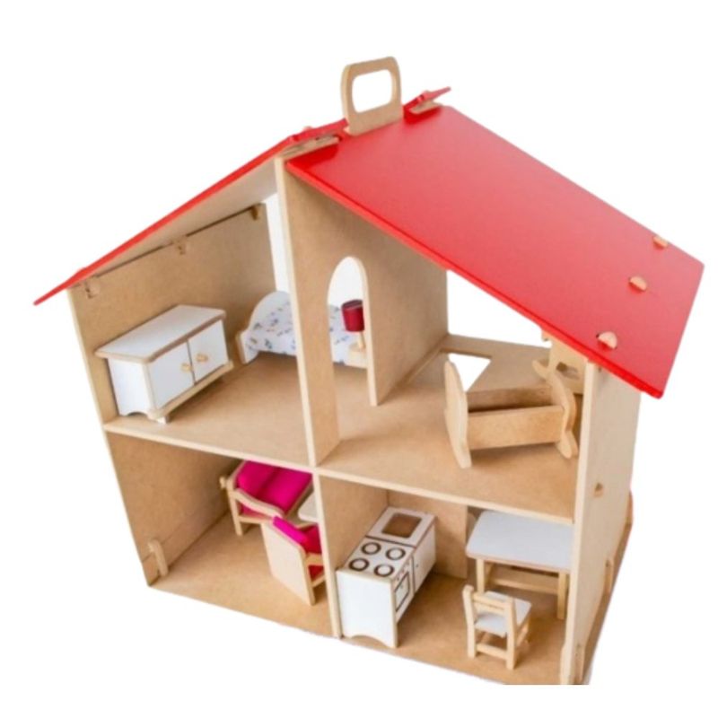 Casinha de Boneca Flex - com Móveis - Madeira - 2 Andares - Bohney