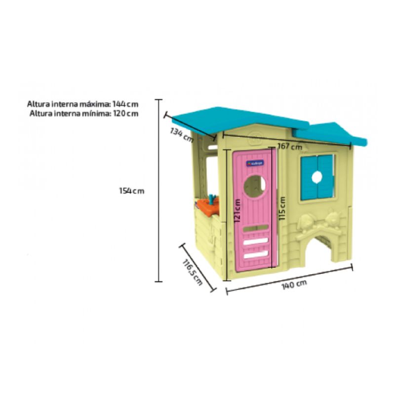 Chegou a Casinha Infanti House para completar a brincadeira da criançada!Com cores vivas e detalhes super divertidos, é fabricada com material resistente com proteção UV.Possui pia com fogãozinho e uma entrada para os pets das crianças.Além disso, conta ainda com uma lateral aberta para melhor visão dos pais ou responsáveis durante a brincadeira.Recomendado para crianças acima de 5 anos.É diversão garantida para o pequenos!ALTURA INTERNA: para crianças de até 1,50 mIdade 5 - 7 anosInmetro CE-BRI/IQB 005923Dimensões Aproximadas (AxLxC) 1,55 x 1,68 x 1,34mIdade Recomendada A partir de 5 anosItens inclusos Pia e Fogãozinho.Peso do produto 50,39 Kg