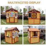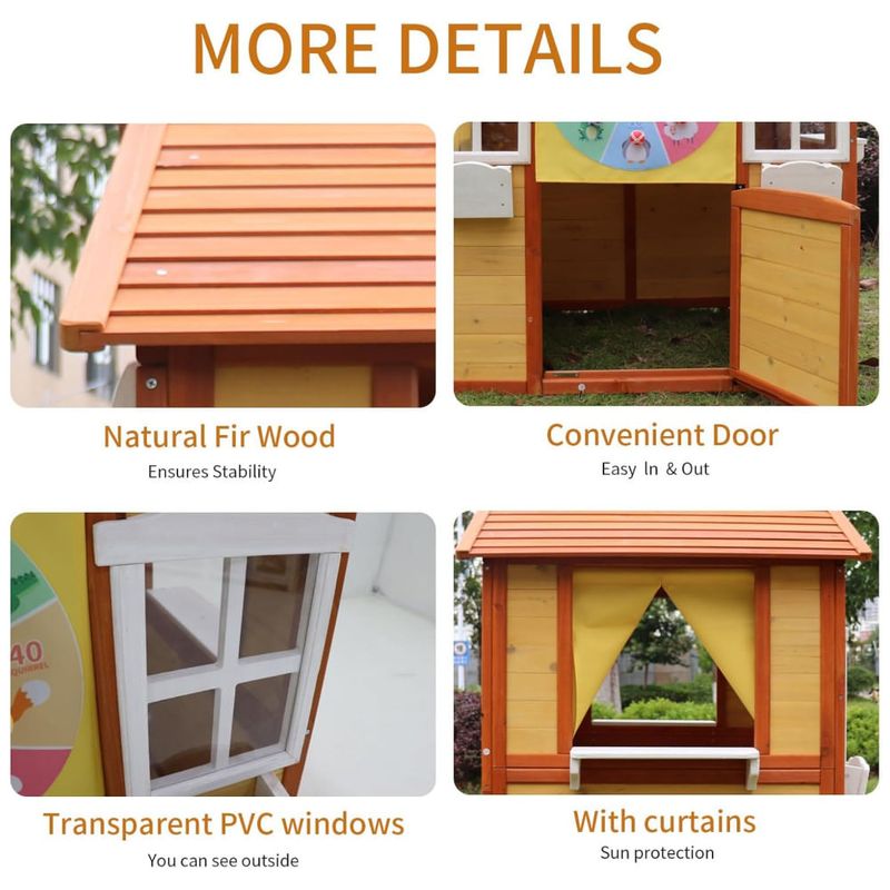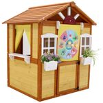 Feita com 100% madeira de abeto de alta qualidade, esta casinha vem com 1 porta, 2 janelas, 2 suportes para vasos de flores, 3 estações de serviço, 1 cortina e 1 quadro negro. Com dimensões de 114 cm de comprimento, 99 cm de largura e 129 cm de altura, é perfeita para crianças de 3 a 6 anos.