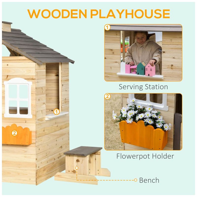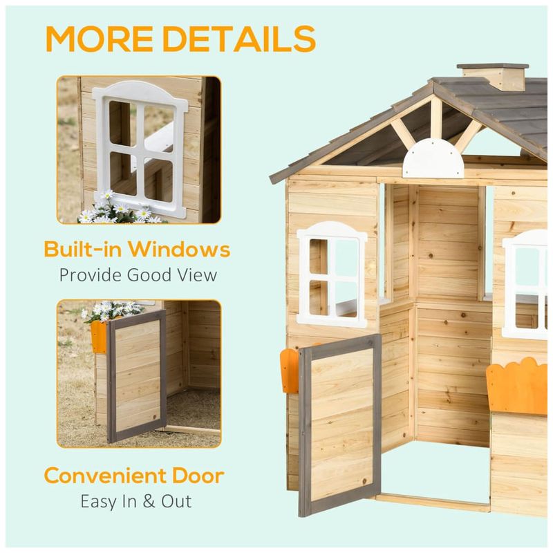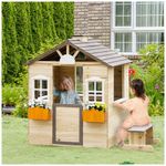 Proporcione um espaço divertido para seus filhos brincarem ao ar livre com esta casa de brinquedo de madeira. Com uma porta de tamanho médio e duas janelas para circulação de ar, a casinha de madeira é projetada para manter os pequenos confortáveis enquanto brincam. Além disso, a estrutura sólida feita de madeira de abeto resistente garante durabilidade para o uso diário.