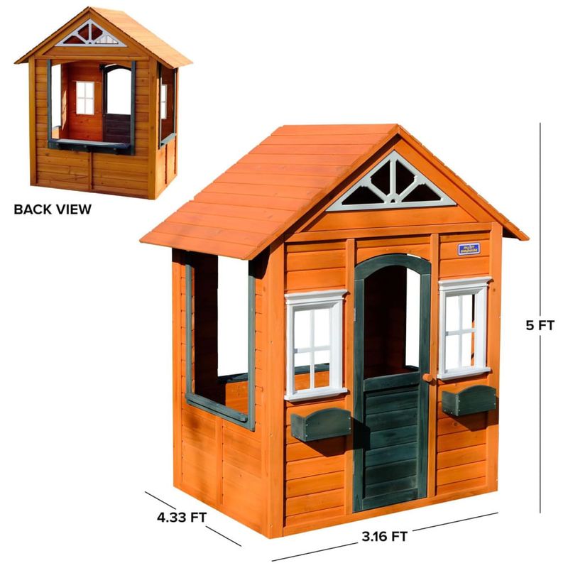As janelas laterais largas permitem que seus pequenos criem sua própria barraca de limonada, restaurante de comida para viagem ou teatro de fantoches. Além disso, você pode adicionar flores artificiais nas prateleiras para vasos de flores fornecidas. A My First Wooden Playhouse da Sportspower oferece horas de diversão para toda a família.