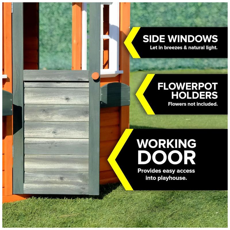 Todos os produtos Sportspower atendem ou excedem os padrões de segurança ASTM, garantindo que crianças e pais possam aproveitar sua casa de brinquedo com tranquilidade. Feita de madeira premium de alta qualidade, pré-pintada e pré-cortada para fácil montagem, o design contemporâneo da casa é espaçoso o suficiente para várias crianças brincarem ao mesmo tempo, promovendo interações sociais e relacionamentos positivos.