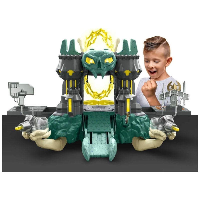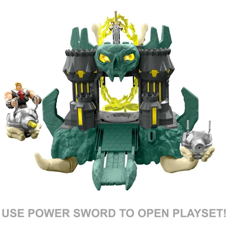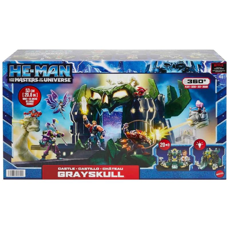 Reviva todas as batalhas épicas do bem contra o mal de Eternia com o conjunto do Castelo Grayskull. Este design de brinquedo é fiel à série animada da Netflix e apresenta luzes e sons dramáticos, uma ponte desdobrável, estações de batalha dobráveis, cápsulas removíveis com mísseis e acessórios de batalha. As cores e decorações podem variar. Este conjunto icônico é o centro do conflito do bem contra o mal em HeMan e os Mestres do Universo. Com um design autêntico da série animada e recursos funcionais, ele pode suportar ilimitado jogue e ser o centro de qualquer coleção de HeMan e dos Mestres do Universo. A ponte da mandíbula pode ser aberta usando a espada incluída. Os olhos da caveira brilham e um rugido gigantesco significa as aventuras internas à medida que se abre dramaticamente O botão lateral também abre o maxilar. Os colecionadores vão querer fazer deste conjunto a peça central para uma extensa exibição de HeMan e os Mestres do Universo. Outras figuras vendidas separadamente e sujeitas a disponibilidade. É um ótimo presente para qualquer fã de MOTU com 6 anos ou mais.