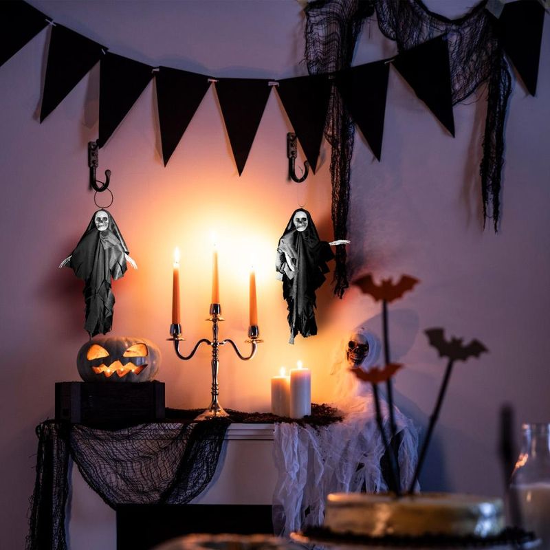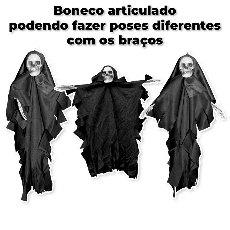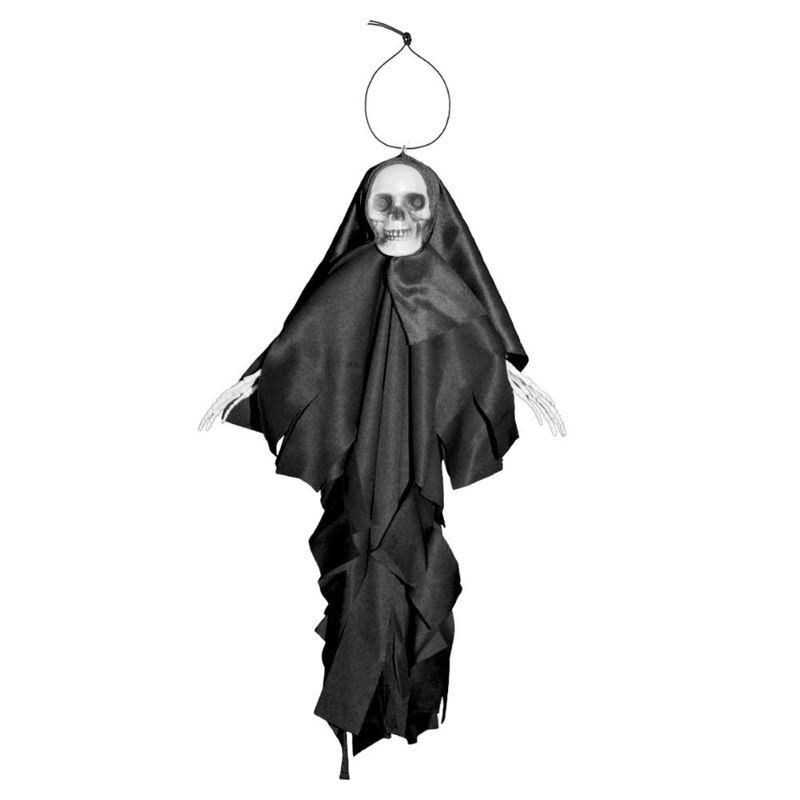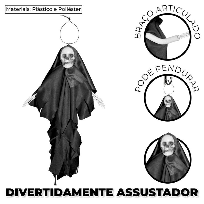 Prepare-se para dar um susto nos seus convidados com o incrível fantasma de pendurar! Com um design macabro e realista, este fantasma é perfeito para criar uma atmosfera assustadora em sua festa de Halloween. Seu tecido macio e fluído da ar fantasmagórico que ao pendurar da a impressão de que está voando. Seus braços são articulados, permitindo criar poses macabras e divertidas criando um efeito visualmente impactante e aterrorizante. Deixe a sua festa assustadoramente divertida com este toque mágico e especial.
