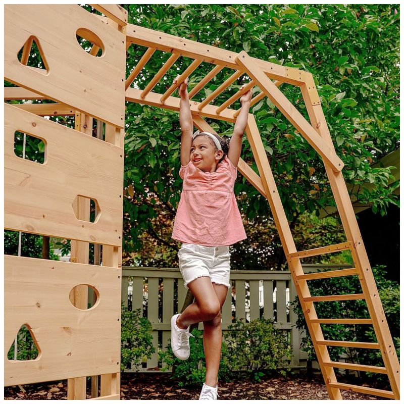 Aventure-se ao ar livre com o Centro de Atividades ao Ar Livre Avenlur Hawthorn 9 em 1! Este centro apresenta balanço, parede de escalada, barras de macaco, parede de rede, escada de corda e corda de escalada, tudo para aprimorar força, coordenação e imaginação. Ideal para crianças de 3 a 11 anos, proporciona um ambiente de brincadeiras seguro e emocionante, atendendo a diferentes grupos etários e níveis de habilidade. Feito com madeira de pinho de alta qualidade, resistente às intempéries, e com certificação de segurança CPC e CPSC, este centro é robusto, durável e seguro. Estimule o desenvolvimento físico, equilíbrio e força com opções emocionantes de escalada, promovendo brincadeiras ativas e crescimento saudável. Incentive a criatividade da criança enquanto embarca em aventuras imaginativas em seu próprio ginásio ao ar livre, estimulando a brincadeira independente, movimento, trabalho em equipe e colaboração.
