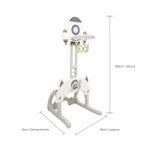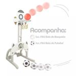 Três brincadeiras em um só brinquedo: futebol, basquete e jogo de argolas;