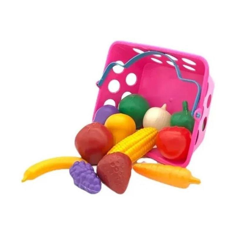 Cestinha Frutas e Legumes Mercadinho Brinquedo Infantil=====================================Ideal para estimular a criatividade, a imaginação e o aprendizado das crianças de forma lúdica e interativa.O conjunto inclui uma variedade de frutas e legumes em miniatura, como maçã, banana, cenoura, milho, entre outros, todos confeccionados em plástico colorido e resistente, com acabamento arredondado e seguro para o manuseio infantil.Acompanha uma cestinha plástica leve e durável, com alças práticas que facilitam o transporte e incentivam brincadeiras de faz de conta, como feira, cozinha ou mercado.Além de divertida, a atividade auxilia no desenvolvimento da coordenação motora, na identificação de cores, formas e na introdução a hábitos alimentares saudáveis.=====================================Contém:01 Cestinha12 Frutas e LegumesEspecificações:- Material: PEAD- Medida: 19cm x 15cm x 7,5cm- REGISTRO INMETRO: 001671/2023- Rosa*** ATENÇÃO ***Não indicado para crianças menores de 03 anos por conter peças pequenas que podem ser engolidas ou aspiradas.A embalagem contém fechos metálicos, retirar antes de entregar o brinquedo para a criança=====================================Devido à diferença entre monitores e iluminação diferentes, pode haver variação na tonalidade apresentada no anúncio. Medidas muito aproximadas.