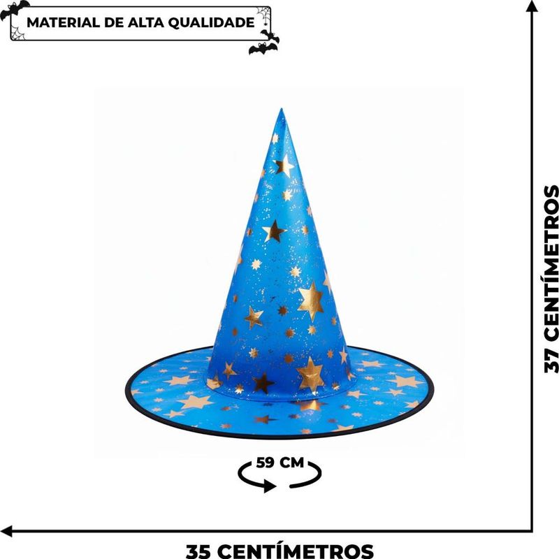 Lindo Chapeu Pontudo pra Fantasia de Bruxinha, Feiticeira, Bruxinho, Feiticeiro e Mago!Transforme a seus pequenos em uma estrela das festas de Halloween com o nosso Chapéu estrelado!O nosso chapéu é decorado com estrelinhas cintilantes e detalhes dourados brilhosos. Cada chapéu é confeccionado com tecido 100% poliéster de alta qualidade, garantindo durabilidade e conforto. Os materiais são suaves ao toque, evitando coceiras ou irritações na pele sensível das crianças. Este chapéu acrescenta um toque encantador a qualquer fantasia de bruxa e é perfeito para fotos memoráveis. Com 3 cores para você escolher, Preto, Laranja ou Roxo, o que melhor combinar com o look da sua bruxinha. Confira!