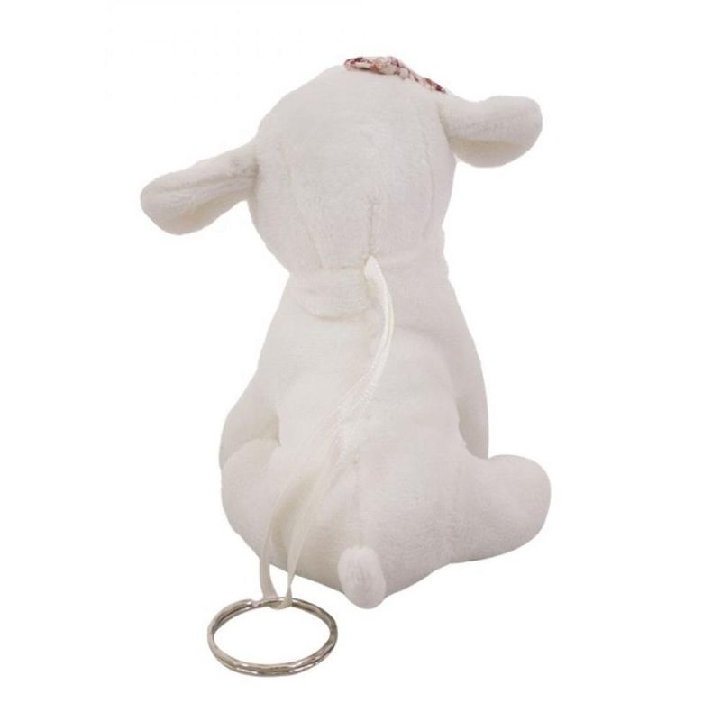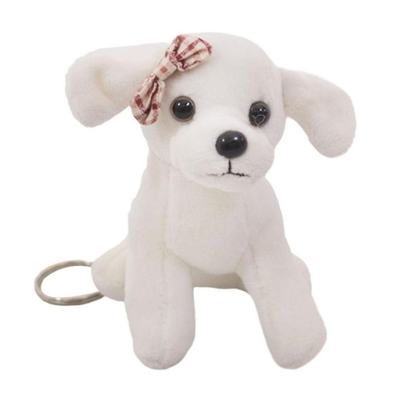 Chaveiro Cachorro Pelúcia Branco Com Laço 11cm Cachorro de pelúcia na cor branco vem com um chaveiro. Material bastante fofo. Material: poliéster; Enchimento: fibra de poliéster; Produto certificado por Órgão acreditado pela CGCRE do INMETRO