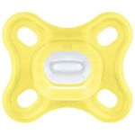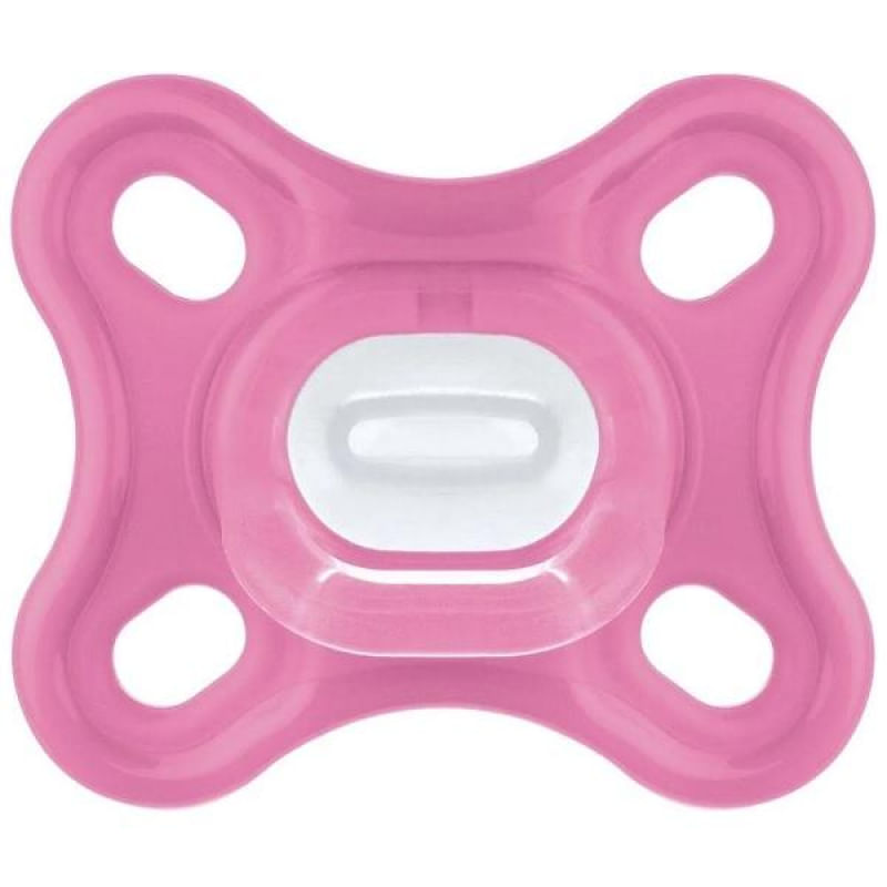 Super leve, a MAM Comfort é 32% mais leve que outras chupetas de silicone, seu bico simétrico com textura SkinSoft tem 94% de aceitação é a menor de todas as chupetas MAM.