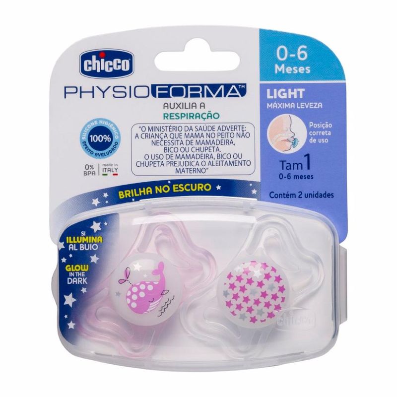 Chupeta de Silicone Physio Light Lumi 0 a 6 meses 2 Unidades - Chicco
