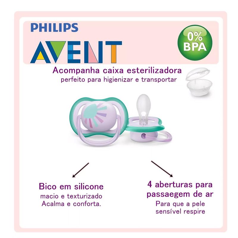 Chupeta Ultra Air 0-6m Rosa Sol Arco-iris Philips Avent