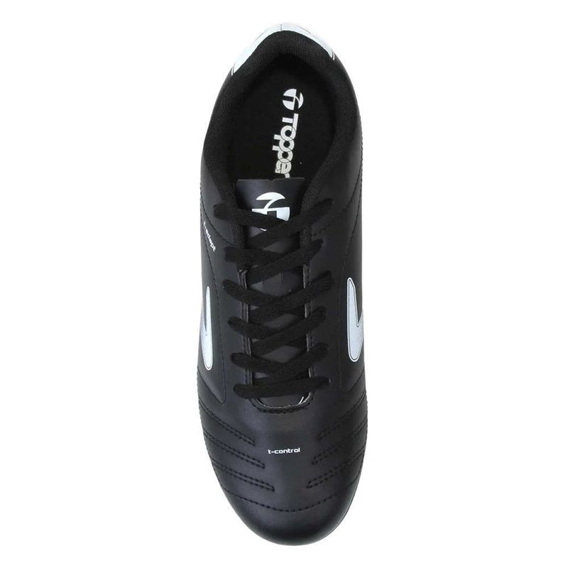 A Chuteira Campo Topper Cup V é uma ótima escolha para os apaixonados por futebol arrasarem nos gramados naturais. Com design que proporciona conforto e estabilidade, possui cabedal em material sintético com as tecnologias T-Control e T-Adapt, que oferecem firmeza, controle e durabilidade nas partidas. Seu forro interno com material têxtil possui reforço acolchoado no calcanhar, que dá maior conforto para os pés durante o uso. O solado é produzido em TPU, material que garante melhor absorção dos impactos durante a corrida, com travas altas e fixas, além de contar com a tecnologia Flexzone, que garante mais maciez e flexibilidade. Tem palmilha em EVA removível e fechamento em cadarço para melhor ajuste. TP03560001.