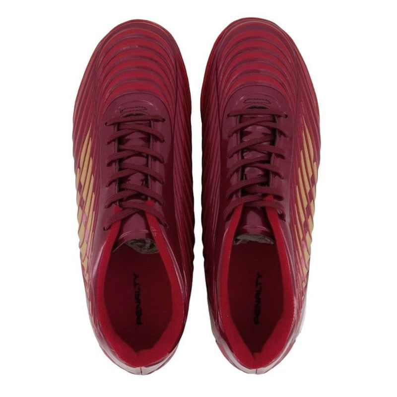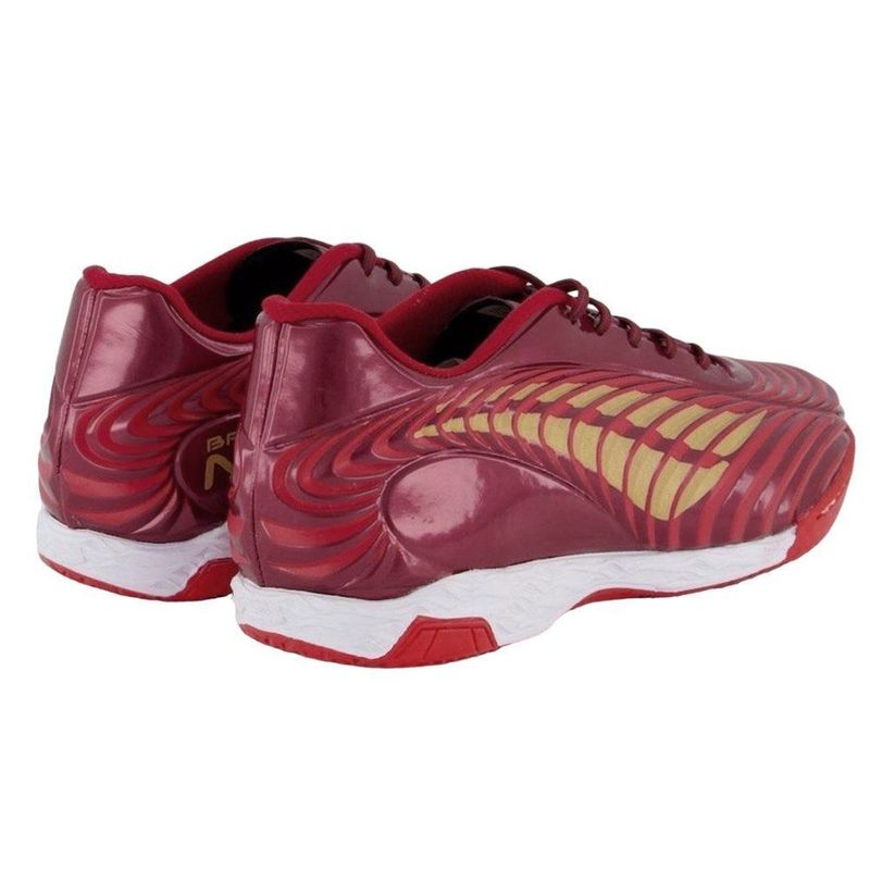 Com a Chuteira Futsal Penalty Brasil 70 Neo Y-2 você se tornará o craque dos jogos nas quadras de futebol de salão. O controle da bola é favorecido pelo cabedal de material sintético com ondulações e recortes estrategicamente desenhados. Conta com fechamento por cadarço, palmilha removível e interior acolchoado, permitindo, assim, perfeito ajuste, melhor higienização e mais conforto. O modelo fornece a tecnologia HiperFlex, que são canaletas posicionadas estrategicamente que auxiliam na flexão e movimento dos pés e o sistema Non-Marking, uma borracha que não marca as quadras e entrega excelente tração O solado de borracha entrega aderência e traz a tecnologia Rotate, pontos de giro que ajuda a prevenir lesões durante as partidas. De cor vermelha cintilante com detalhes em dourado, exibe a logo da Penalty na lateral, entregando mais estilo ao produto.. Referência: 124262.4032.