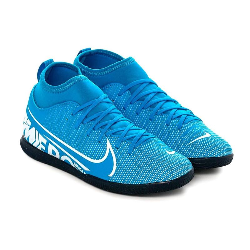 Chuteira Infantil Nike Mercurial Superfly Club SALÃO 31-36 <br>Marca: Nike <br>Ref: AT8153-414 <br> <br>A Mercurial é uma das chuteiras Nike mais adoradas de todos os tempos. Centenas de jogadores e jogadoras profissionais usam este modelo em todo o mundo. Projetada para voar baixo, o material leve e o caimento firme trazer a tração que você precisa para deixar o outro time comendo poeira. A Chuteira Nike Jr. Mercurial Superfly 7 Club IC envolve o seu pé para velocidade nas ruas, quadras ou superfícies internas.