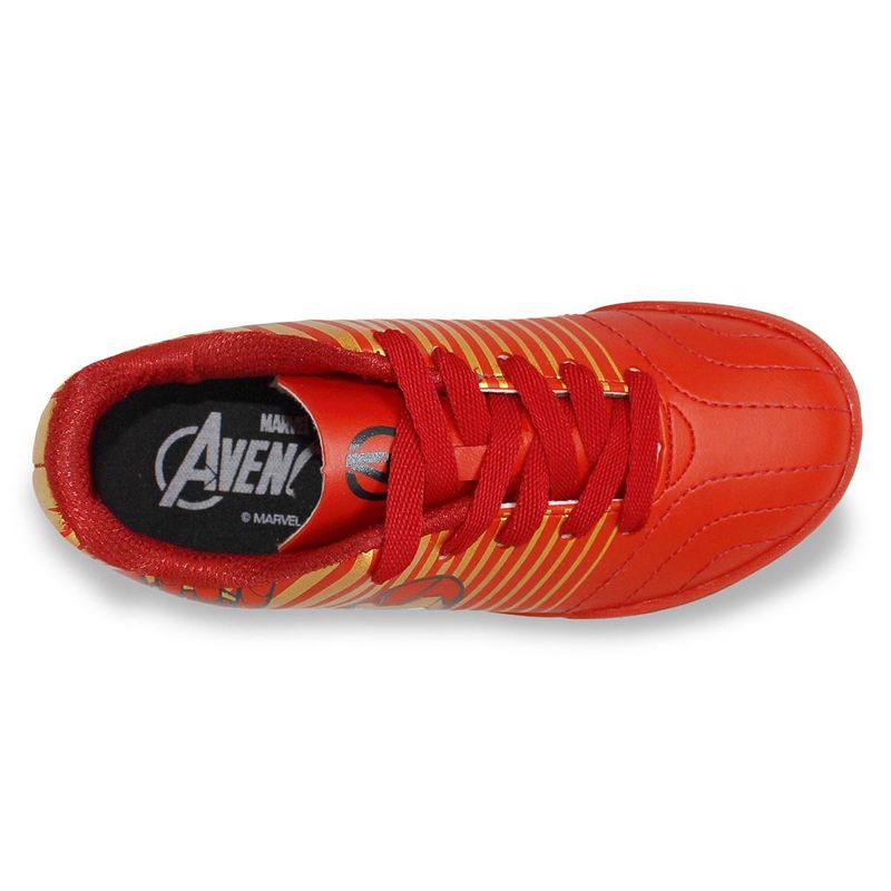 Seja o destaque dos gramados com a Chuteira Society Dray Marvel Homem de Ferro Juvenil. Desenvolvida com um cabedal em material sintético, essa chuteira traz um fechamento por cadarço, proporcionando um ajuste ideal aos pés. Seu interior possui um acolchoamento forrado em material têxtil e uma palmilha em EVA removível que facilita na hora da higienização do calçado. Com um design em homenagem ao Homem de Ferro, esta chuteira conta comum solado com microtravas emborrachadas que oferecem mais aderência ao gramado. Referência: 4062.