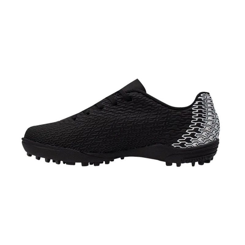 Com a Chuteira Society Penalty Bravo Kids XXII, os jovens craques terão um melhor desempenho durante os jogos. Indicada para campos de grama sintética, essa chuteira possui cabedal confeccionado em material sintético texturizado, que oferece melhor controle e precisão com a bola nos pés. Possui forro interno com acolchoamento reforçado na região do calcanhar para maior proteção, além de palmilha feita em EVA, forrada e removível. O modelo traz a tecnologia HiperFlex, canaletas posicionadas estrategicamente que auxiliam na flexão e movimento dos pés. O solado de borracha dispõe também do sistema Rotate, pontos de giro que ajudam a prevenir lesões durante as partidas. O design vem na cor preta com detalhes da marca em branco. Referência: 246246.98.