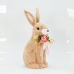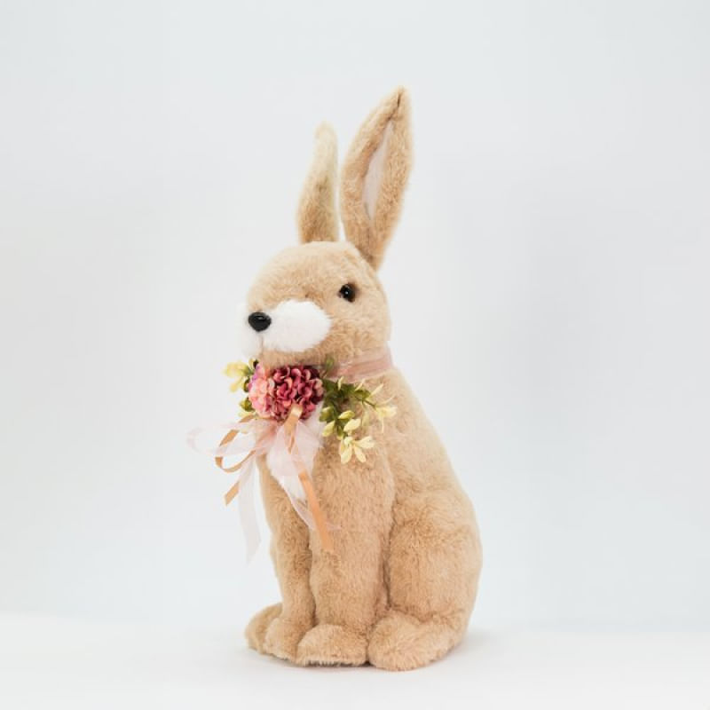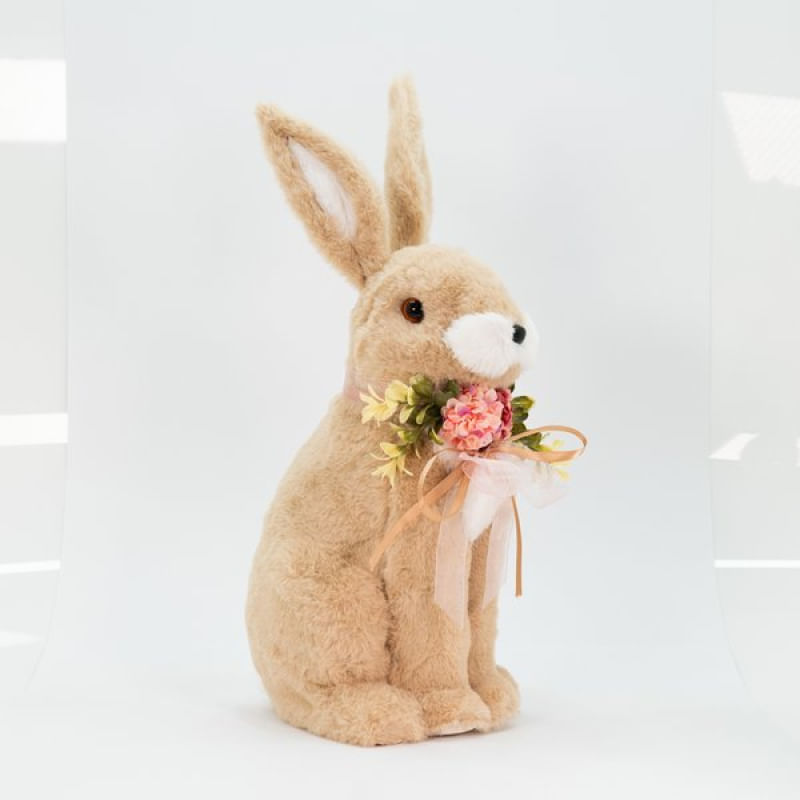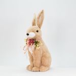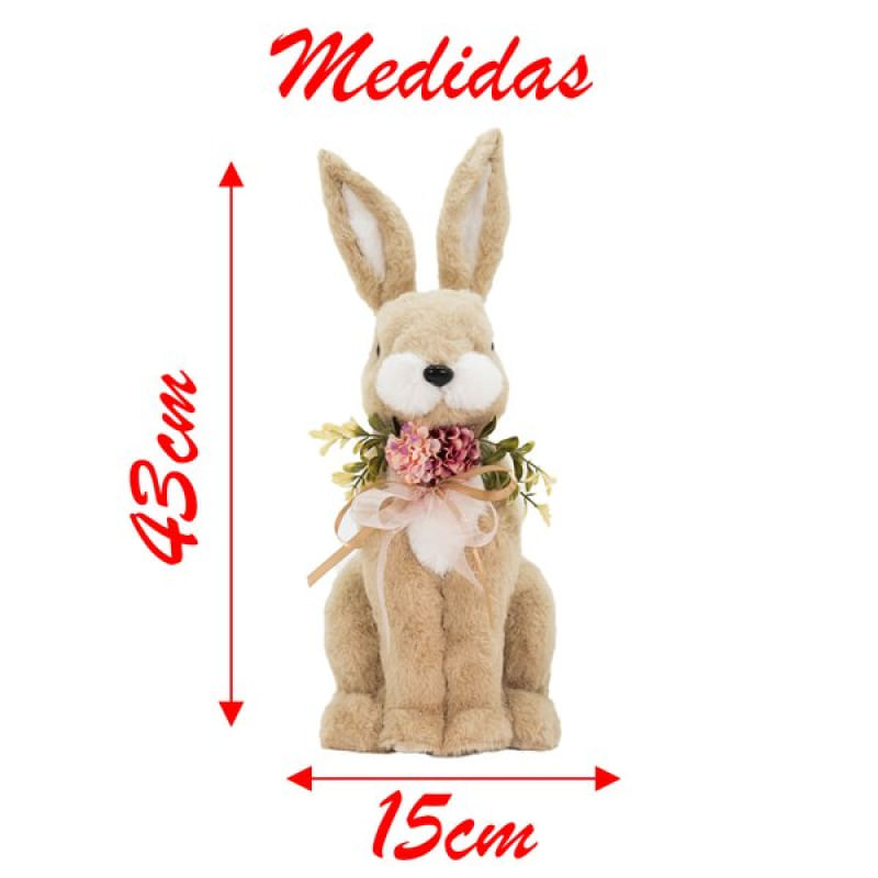 Coelho De Páscoa Decoração Enfeite Coelhinho Bege com Flores 43cm -
