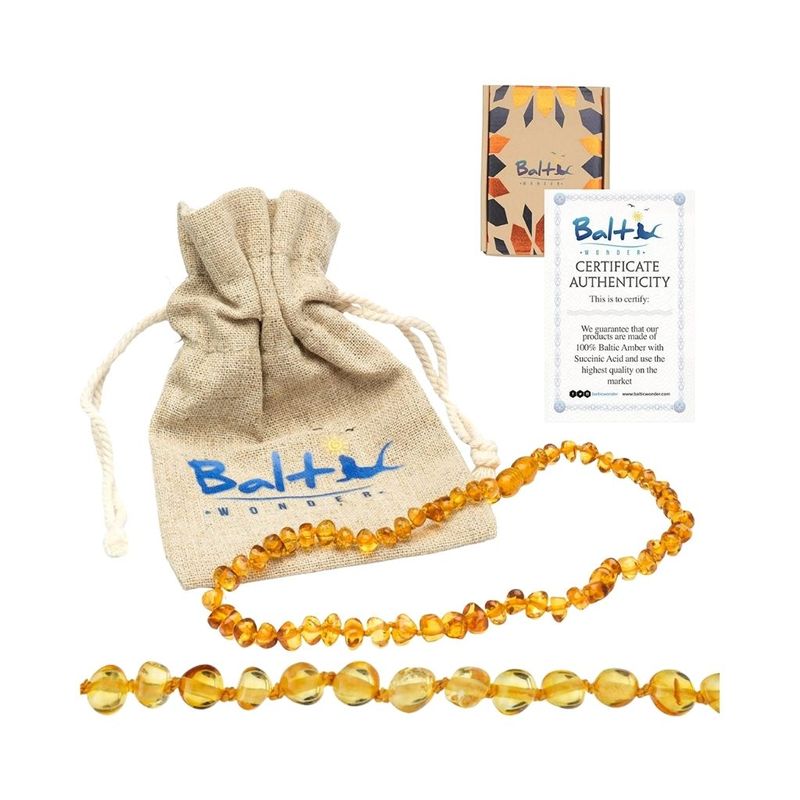 Sobre o produto Capacidade antiinflamatória e propriedades imunológicas do sistema imune do ácido succínico e capacidade analgésica. 100% feito de âmbar real do Báltico. Handmade, segurança atada Amber Bead, a melhor qualidade no mercado. Apaziguador da dor na dentição, Baba e Fussiness Reduzir-Grande alternativa às drogas. Presente perfeito do bebê! Comprimento: 30 cm / Tem que ter o produto quando a criança recém-nascida & as crianças começarem a dentição. Suporte rápido, compre com confiança com garantia de 100% de satisfação do cliente.