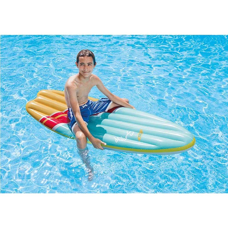 Diferenciais:Design inspirado em prancha de surf colorida.Ideal para uso na piscina.Material resistente e durável.Fácil de inflar e transportar.Confortável para momentos de relaxamento.