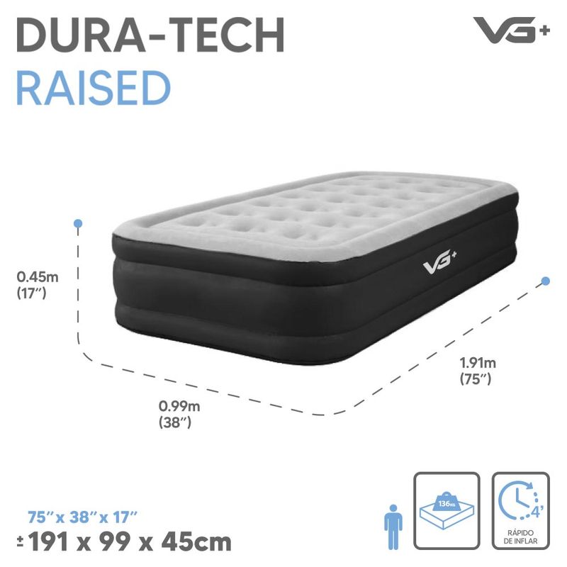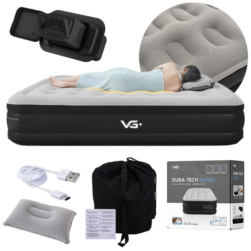 Durma com o conforto de uma cama real, onde você estiver! O Colchão Inflável Solteiro Raised VG Plus foi projetado para oferecer o máximo de praticidade, durabilidade e conforto. Com altura elevada, ele proporciona uma experiência de sono mais estável, ergonômica e agradável ? ideal para quem não abre mão de dormir bem, até fora de casa. A bomba de ar de lítio removível foi desenvolvida para facilitar sua rotina, oferecendo mobilidade e autonomia no uso. Nada de tomadas ou extensões: com bateria recarregável via USB, ela garante inflagem rápida com apenas um toque.