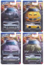 Coleção com 4 Miniaturas Pontiac Series Marca: Hot Wheels / Mattel. Coleção: Pontiac Series Escala: 1/64. Ano de Lançamento: 2025 Coleção com 5 Miniaturas: #1 - ? Pontiac Firebird #2 - ? Pontiac GTO #3 - ? Pontiac Bonneville #4 - ? Pontiac GTO Judge
