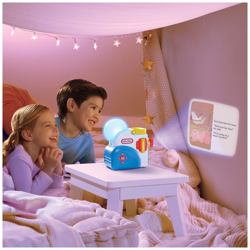 A Story Dream Machine ajuda a desenvolver habilidades iniciais de leitura, permitindo que as crianças vejam e ouçam palavras enquanto lêem junto com o narrador, com as palavras e imagens brilhando na parede.