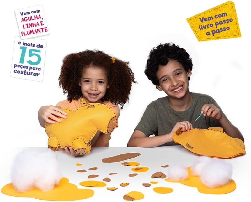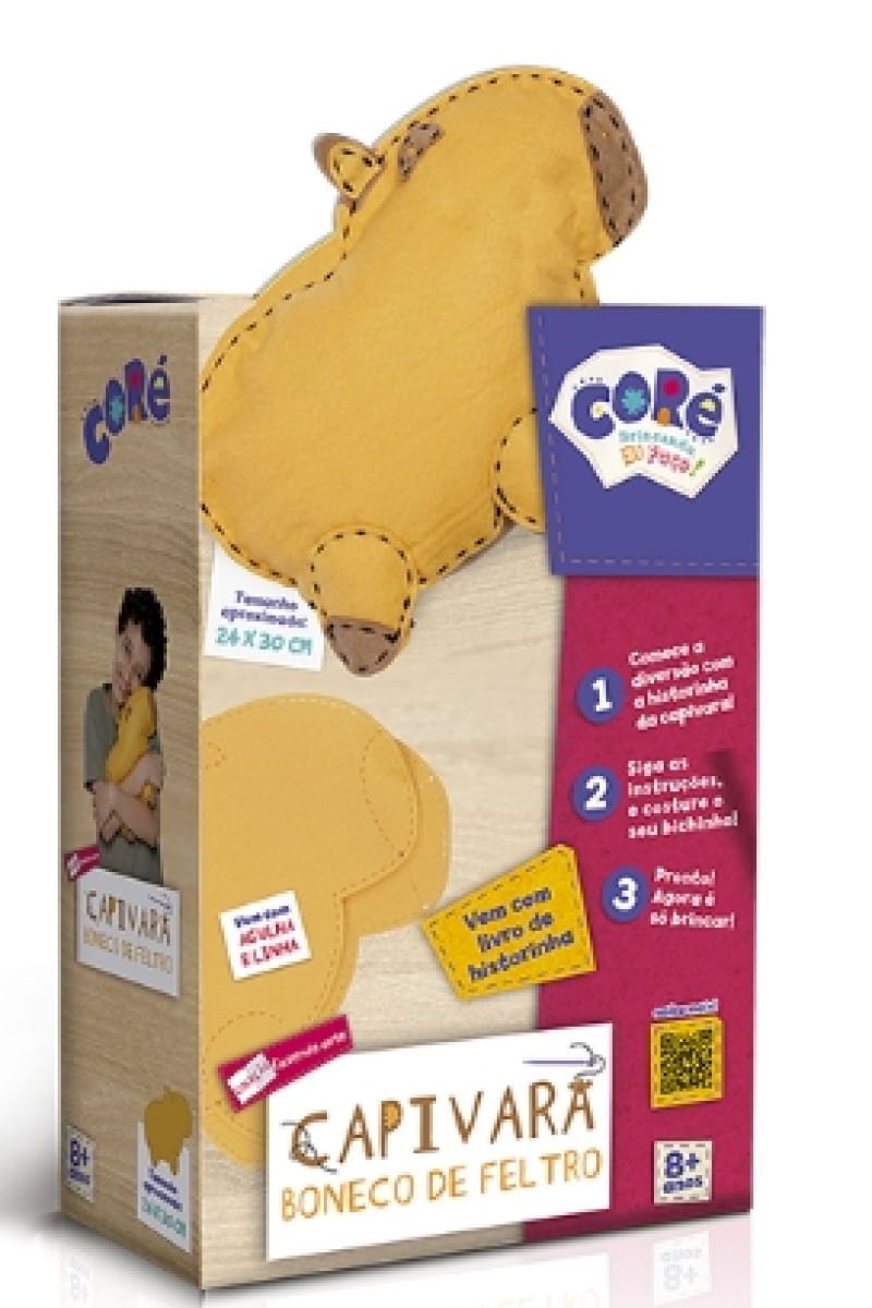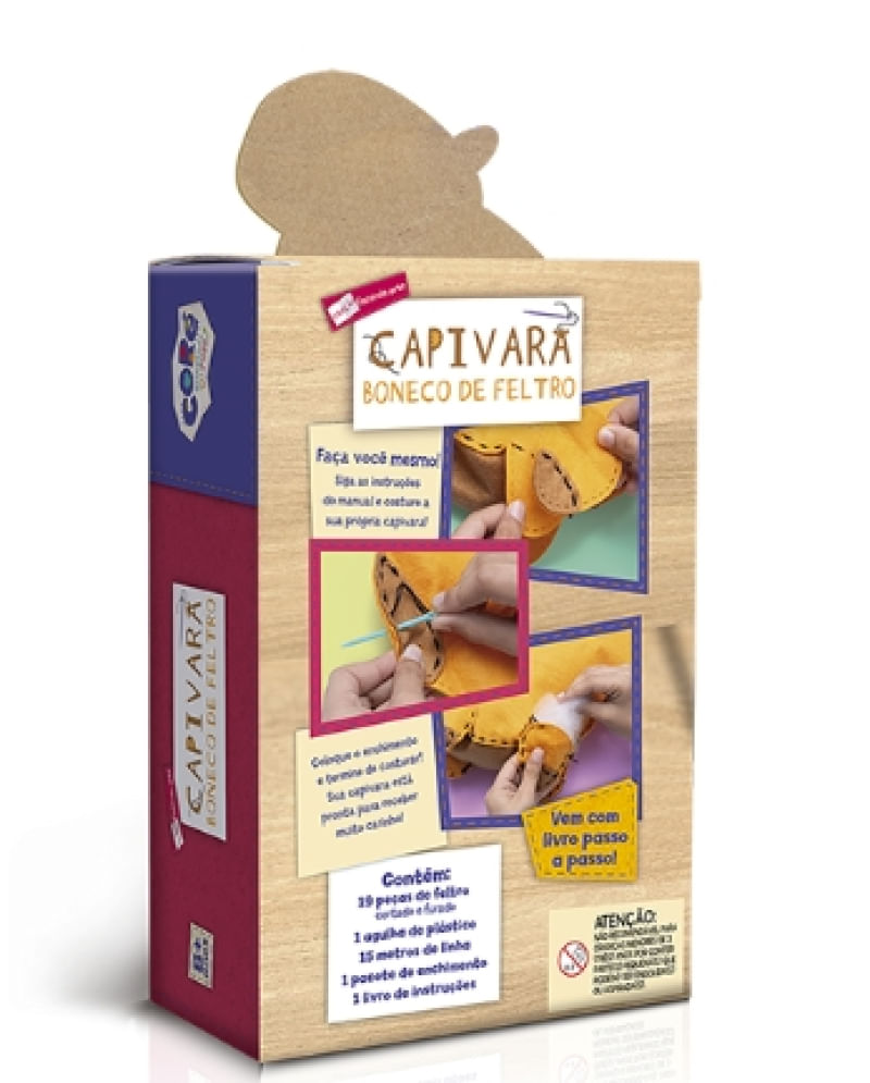 Coleção Fazendo Arte - Capivara - Boneco de Feltro Livro de Atividades Costure sua própria Capivara com este livro superdivertido que ensina o passo a passo de forma simples e prática. O kit inclui tudo o que você precisa: feltro, linha, agulha e enchimento para montar o seu boneco do seu jeito!