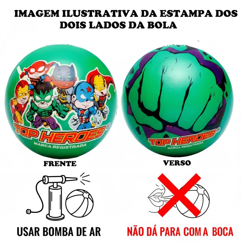 Bola de Vinil Infantil Top Heroes Verde Super Heróis Decoração e Lembrancinha de Festas Atacado Revenda - 10 unidades