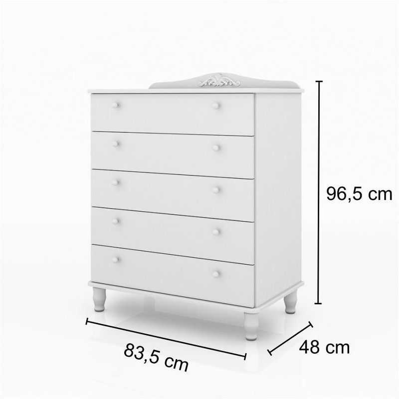 Essa cômoda infantil possui um design clássico, com pés torneados de madeira maciça e aplique de arabesco na parte superior do móvel, ou seja, uma opção perfeita pra quem quer criar um ambiente provençal, digno de príncipe e princesa. Quanto a qualidade, podemos afirmar que é excelente, afinal, essa cômoda infantil branca é fabricada 100% em MDF, o que garante um produto durável e resistente.