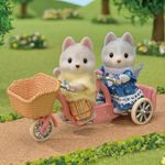 ·O Conjunto Bicicleta Dupla - Irmã e Irmão Huskys - contém a menina Husky Pauline e o menino Husky Hayden e uma bicicleta.