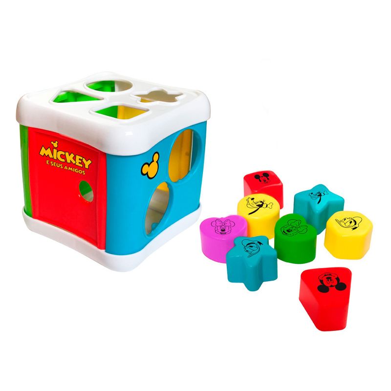 Cada face do Caixa e encaixa Disney Baby tem uma atividade diferente e divertida. São vários formatos para montá-lo, use a criatividade! Ele acompanha 8 peças de encaixar no cubo, porta que abre e fecha, entre outras atividades que irão auxiliar no desenvolvimento, coordenação motora e lógica do bebê.