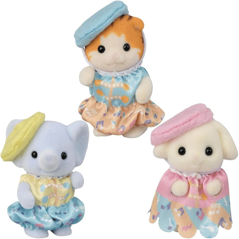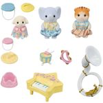 O Conjunto Concerto do Jardim da Infância traz muita música e fofura para o universo Sylvanian! Inclui três bebês vestidos com fantasias de banda e vários instrumentos como tambor, pandeiro, sousafone e piano em formato de estrela. Ideal para desenvolver a criatividade musical das crianças, esse set é perfeito para enriquecer o cenário da creche Sylvanian.