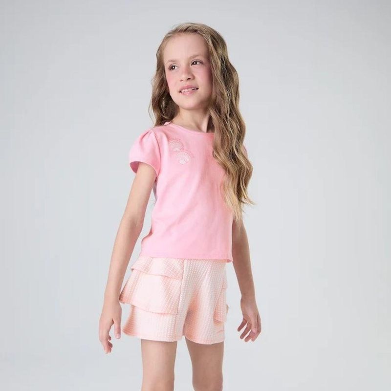 CONJUNTO CURTO LILICA RIPILICA Com uma leve inspiração no universo infantil, nosso Conjunto Lilica Ripilica promete um visual que combina conforto e estilo! A blusa em manga curta com estampa em concha, garantindo modernidade ao visual. Já o short conta com elástico no cós, oferecendo o ajuste perfeito para as meninas aproveitarem cada momento. • Conjunto com blusa e short