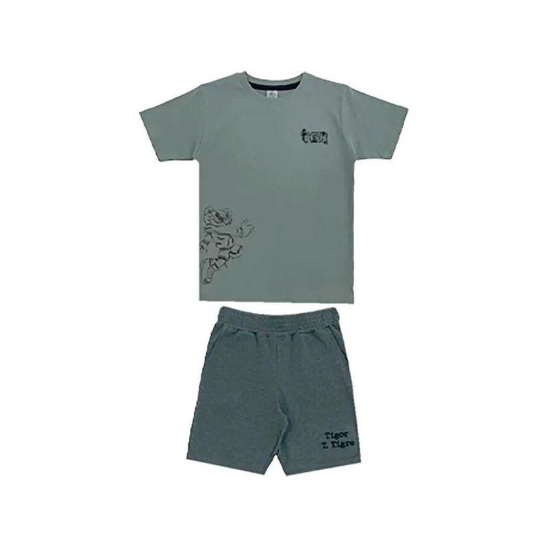 CONJUNTO CURTO TIGOR T TIGRE O conjunto perfeito para acompanhar os pequenos em todas as suas descobertas! A camiseta, confeccionada em meia malha leve e confortável, traz uma estampa super despojada e divertida do Tigor T. Tigre, deixando o visual cheio de personalidade e atitude. A bermuda completa o look com muita praticidade: possui cós com elástico para ajuste confortável, bolsos funcionais e uma estampa exclusiva do Tigor, que reforça o estilo marcante da marca. Destaques: Camiseta em meia malha com estampa divertida e cheia de personalidade. Bermuda com cós elástico e bolsos, ideal para garantir conforto e funcionalidade. Estampa exclusiva do Tigor T. Tigre na bermuda, adicionando autenticidade ao look. Modelagem confortável, perfeita para os dias de movimento e diversão. Ocasião de uso: Ideal para passeios ao ar livre, encontros com os amigos ou até aquele almoço de domingo em família. Um conjunto leve e estiloso que proporciona liberdade de movimento e muito charme para todas as ocasiões! CARACTERÍSTICAS GERAIS DO PRODUTO: Composição: CONJUNTO CAMISETA ALGODÃO 100% BERMUDA ALGODÃO 62% POLIÉSTER 36% ELASTANO 2%