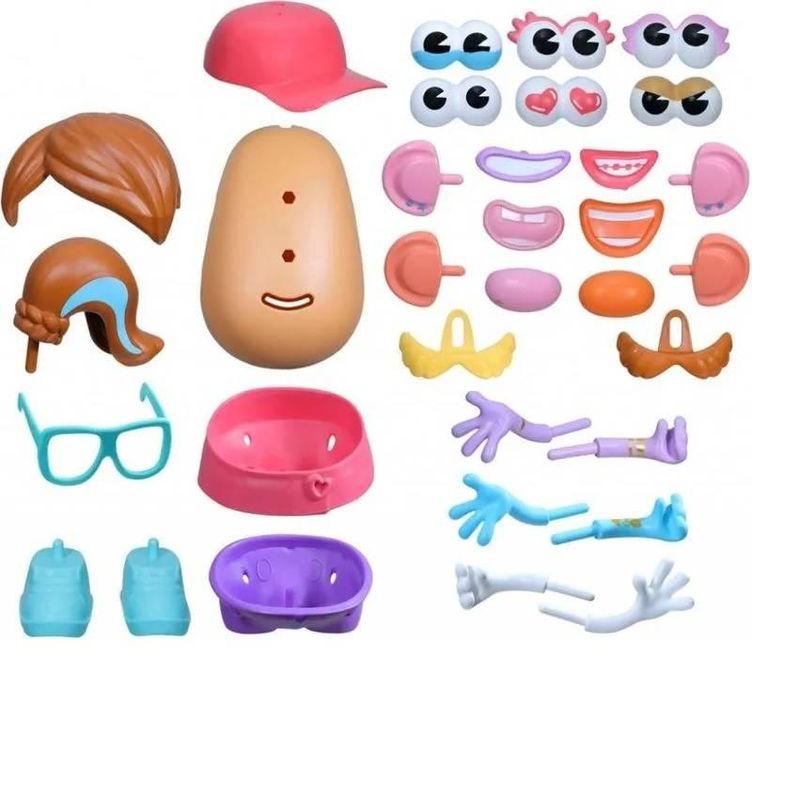 Todas as possibilidades expressivas com o kit Batatas Expressivas! Com 1 corpo de batata e 32 acessórios Potato Head, as crianças podem criar muitas expressões faciais diferentes, estilos totalmente únicos e as combinações mais loucas. Este kit vem com 6 pares de olhos e 4 bocas para diversas expressões faciais, além de várias peças Potato Head divertidas, como braços com tatuagens e joias, óculos, chapéu, orelhas com e sem brincos e muito mais! No fim da brincadeira, todas a peças cabem no compartimento do corpo de batata!