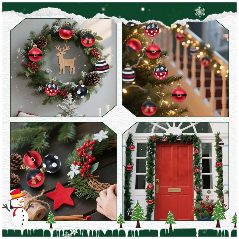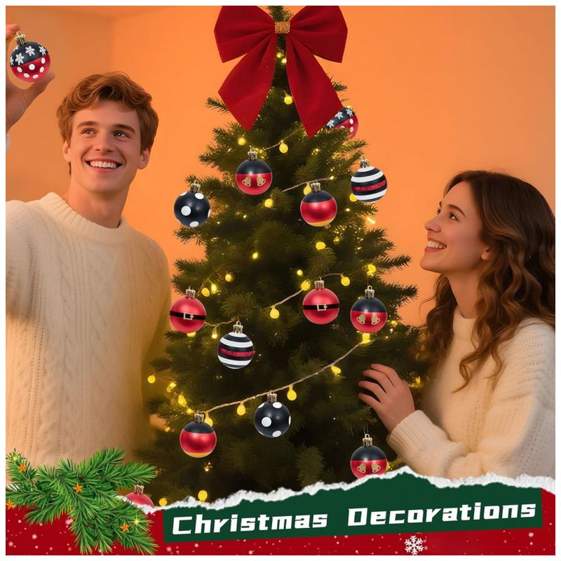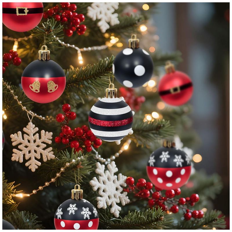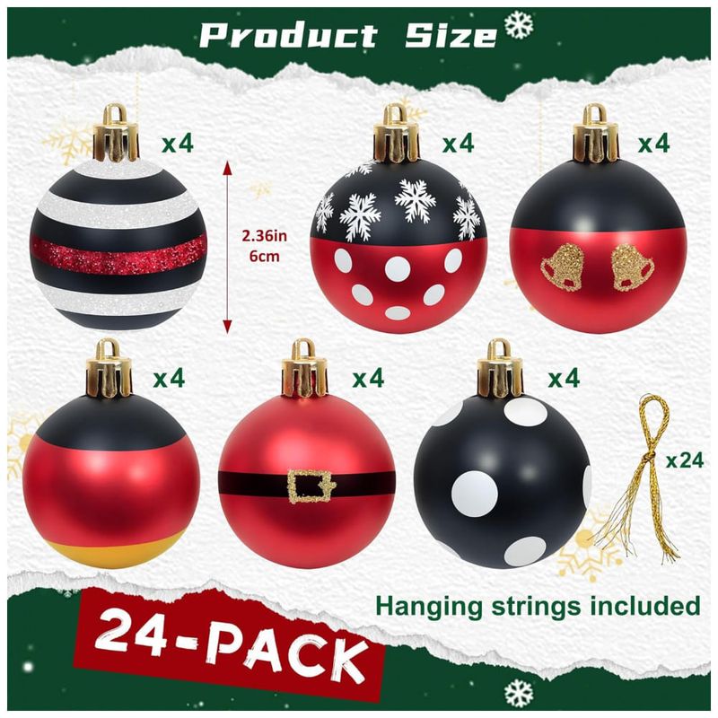 Enfeite seu Natal com alegria e um toque divertido com este conjunto de bolas de Natal inspirado em personagens, perfeito para famílias com crianças, festas temáticas e decorações diferenciadas. O kit inclui 24 bolas de 6 cm (2,36"), em cores vivas vermelho e preto, e 6 padrões cartoon, remetendo ao universo dos ratinhos clássicos das animações. Ideal para quem deseja um visual lúdico e seguro, pois são feitas em plástico resistente e antichoque, muito mais leves e seguras que as tradicionais bolas de vidro.