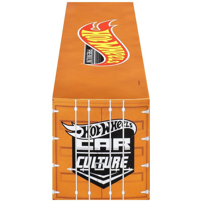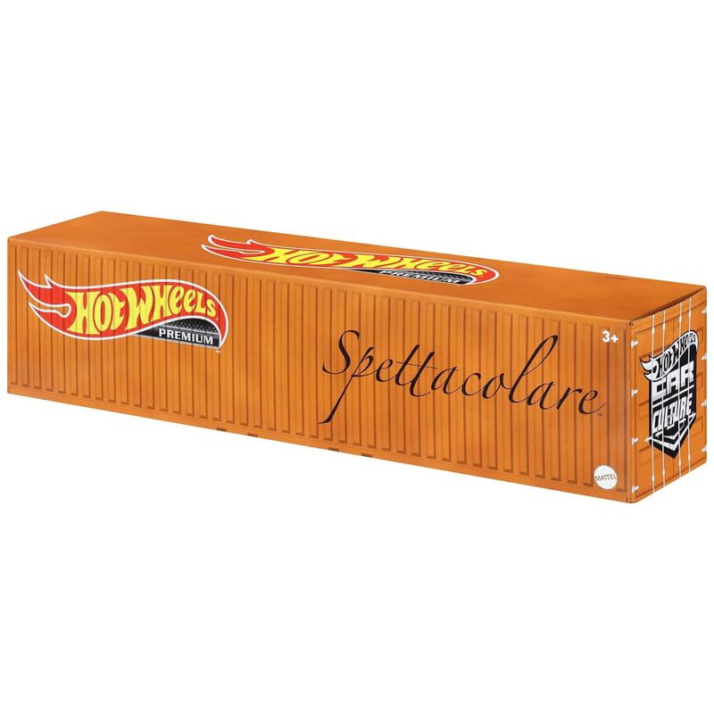 Os 5 veículos do conjunto de contêineres Hot Wheels Premium Car Culture Che Figata vêm em um contêiner especial para colecionadores que pode ser usado para guardar os carros ou exibi los.