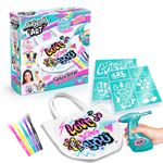 As crianças podem criar estampas incríveis usando a técnica de aerografia! Com um aerógrafo eletrônico, cores vibrantes e moldes exclusivos, é possível customizar bolsas, camisetas, tênis, bonés e muito mais!