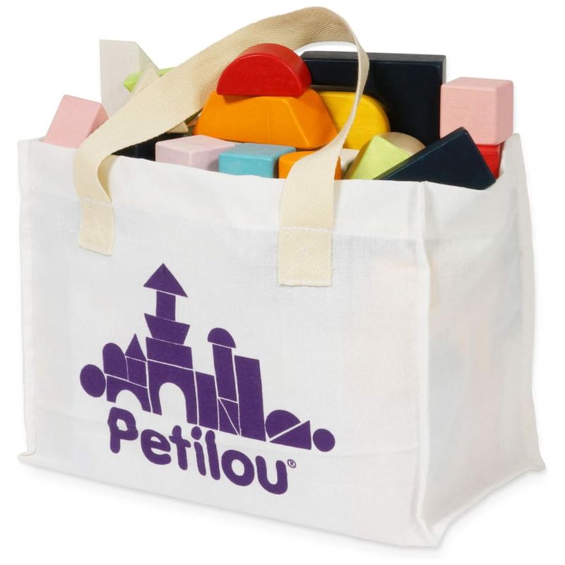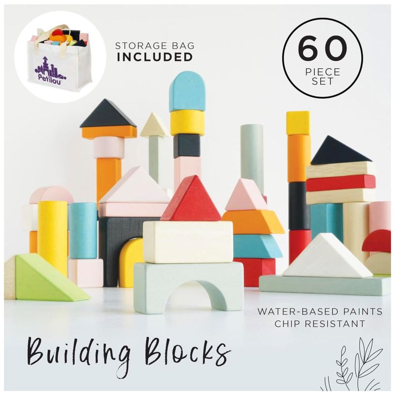 Nome do modelo 60 blocos de construção com bolsa de transporte de algodão, brinquedos de madeira premium para crianças de todas as idades