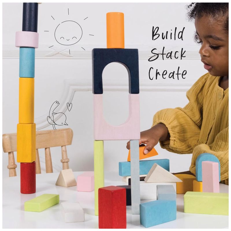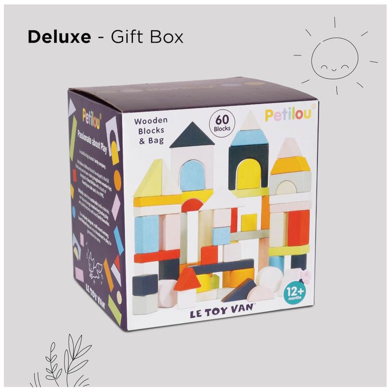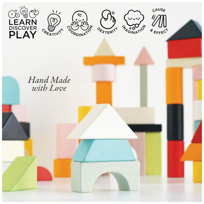 Este conjunto de blocos de construção é composto por 60 peças feitas de madeira de seringueira sustentável e é totalmente livre de plástico. Os blocos são decorados com tintas à base de água e possuem bordas seguras e suaves, incentivando a aprendizagem através da brincadeira. As peças vêm em uma variedade de formas e cores, apoiando o desenvolvimento das habilidades motoras e da coordenação das crianças. Este conjunto é um presente educativo criativo e perfeito para meninos e meninas. Os brinquedos de madeira são tradicionais e duráveis, rapidamente se tornando favoritos da família por gerações futuras. Além disso, esses blocos são lindamente construídos e pintados à mão, feitos de madeira de seringueira durável e sustentável. O brinquedo é de alta qualidade e seguro, testado de acordo com os mais altos padrões de segurança. O conjunto inclui 60 blocos de construção de madeira em um saco de algodão fácil de transportar e dimensionado para as mãos das crianças.