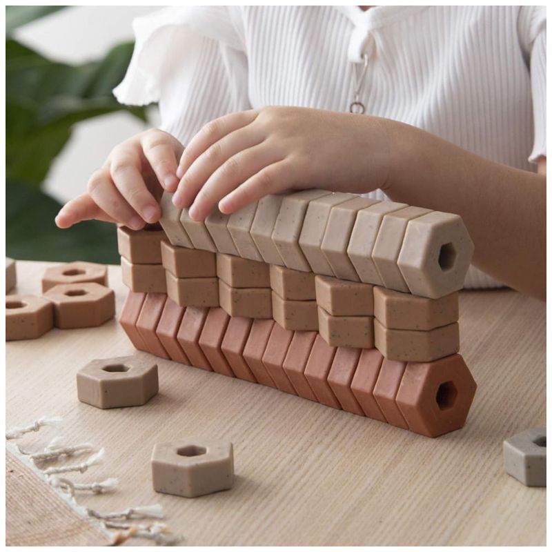 O Guidecraft Little Pavers 60 peças é um conjunto de blocos em formato de pequenas lajotas, desenvolvido para crianças a partir de 2 anos explorarem padrões, empilhamento e construção arquitetônica em escala reduzida. Cada peça é produzida em plástico TPR texturizado com interior pesado, proporcionando experiência tátil e sensação de peso semelhante a pavimentos reais em miniatura.?